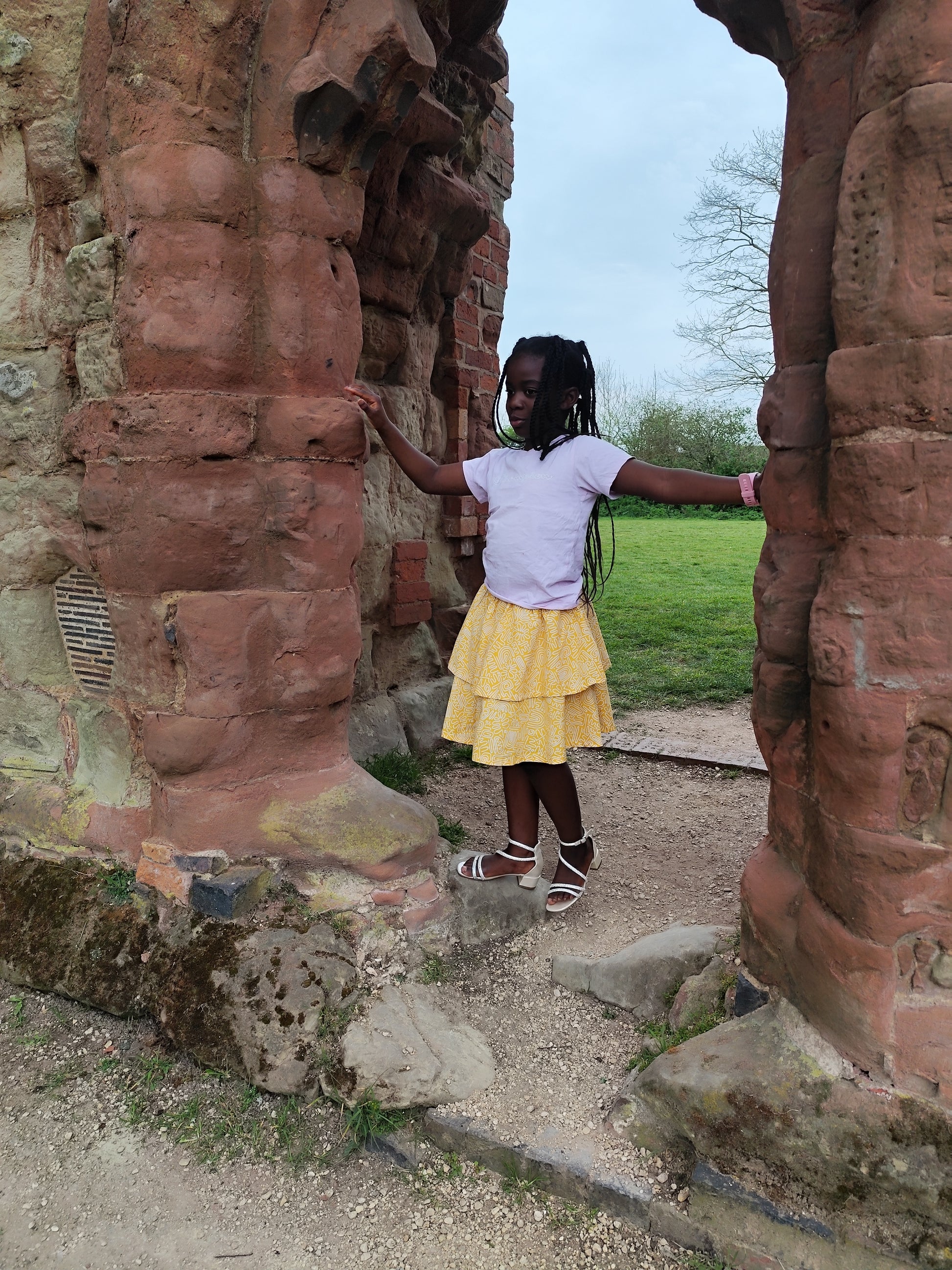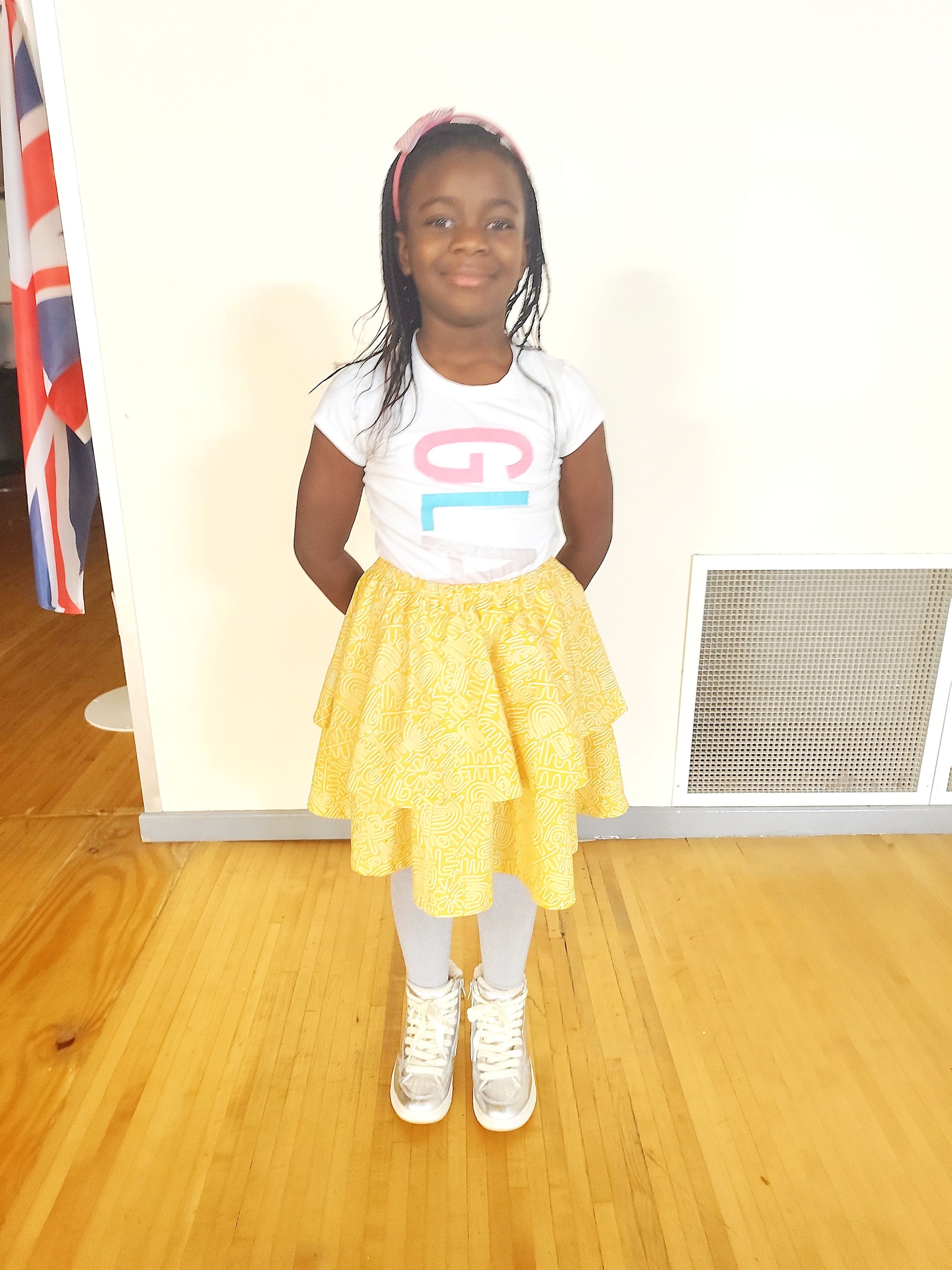 Let her shine bright in our bold yellow two-tier tribal flare skirt, styled with: