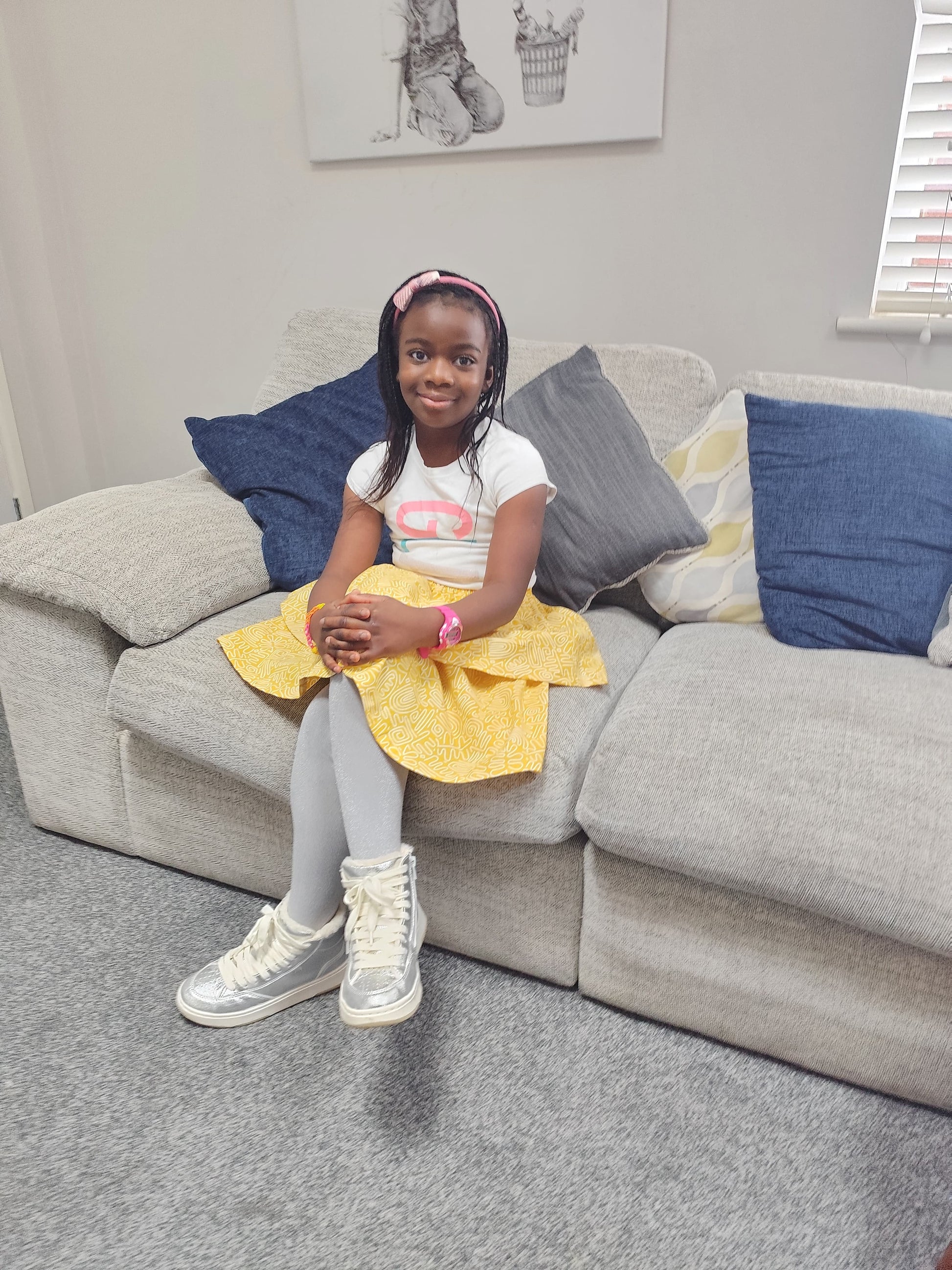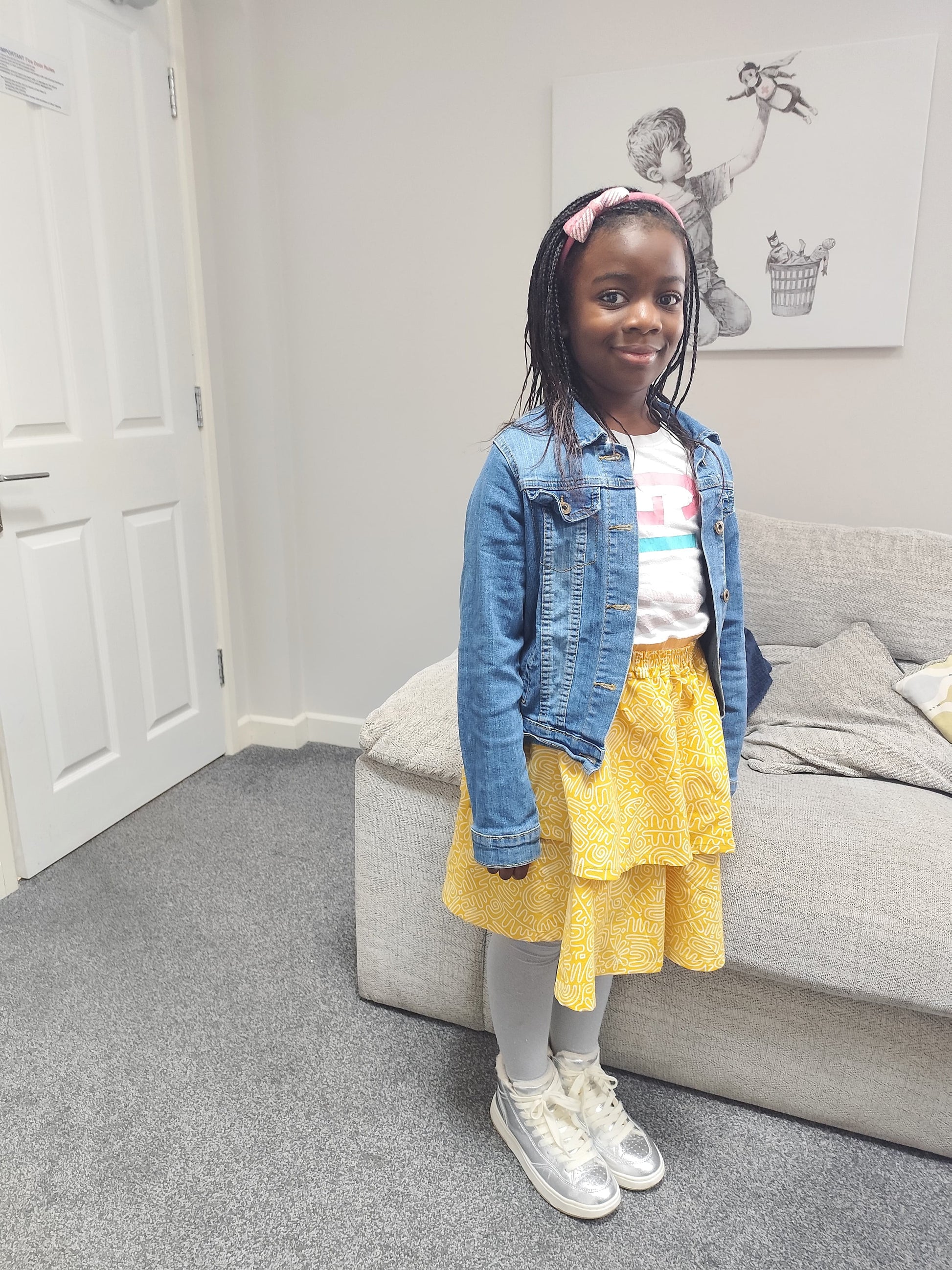 Yellow or tribal-print headband – to pull the look together and add a bit of playful charm.